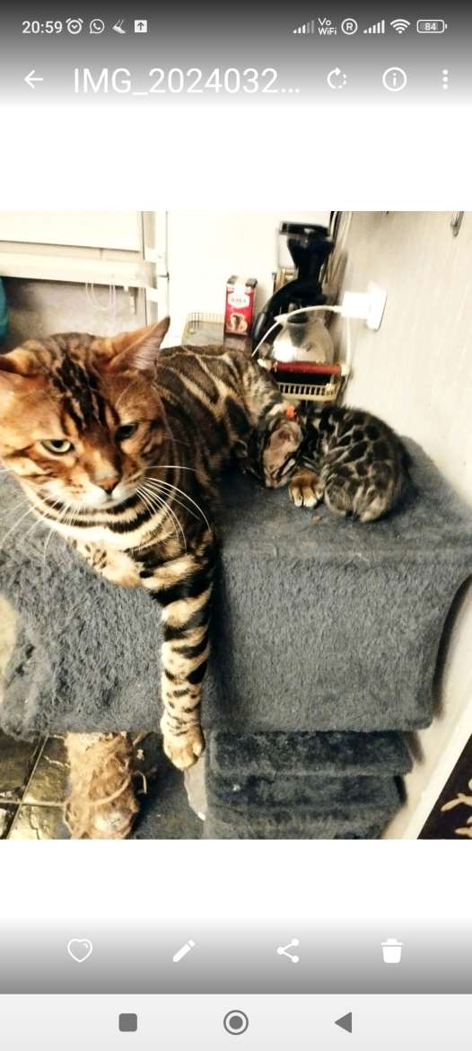 Myydään Bengalin pentu tyttö Syntynyt 4.2.2004 elikkä luovutus ikäinen.madotettuna,rokotettuna ja sirutettuna.Kummaltakin vanhemmalta löytyy sukutaulut,rekisteröitynä Ticaan.Pentu on tottunut koirien kanssa olemaan.
