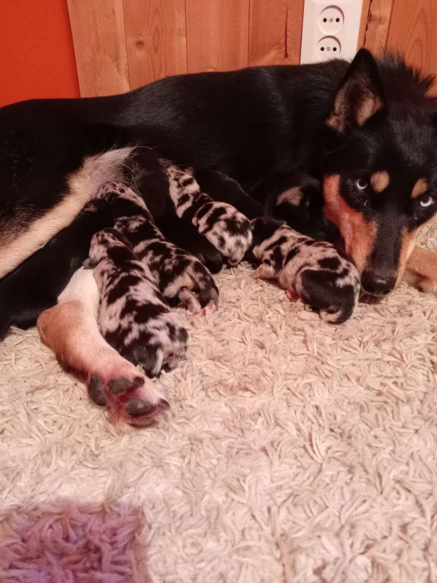 1.9.2025 Syntyi meidän kotikoirille vahinko pentue 3 kaunista naarasta ja 1 uros (ruskealla nartulla ja mustavalkoinen tyttö on jo saatu omaan kotiin)